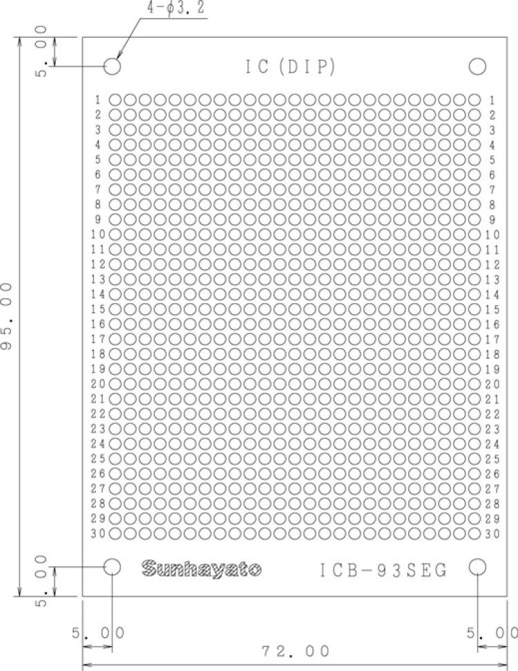 ICB-93SEG|小型ユニバーサル基板|ガラスエポキシ両面|72×95×1.6t|
